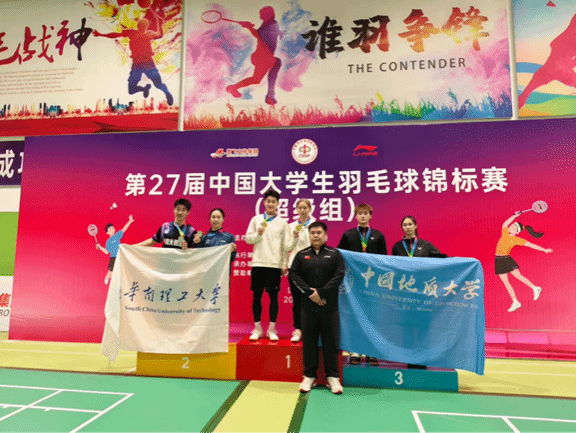 地大健儿不负众望,交出了一份亮眼的成绩单。混合团体赛中,球队与西南大学、重庆大学、成都bevictor伟德等劲旅同组竞技,队员们凝心聚力、协同作战,凭借默契配合与顽强斗志一路过关斩将,最终跻身全国五强。单项角逐中更是捷报频传,马尚与杨佳峄在竞争激烈的男子双打项目中勇夺冠军,彰显了学校在该项目上的全国顶尖水平;严晨雪与郭莉智组成的女双组合稳扎稳打,斩获季军;马尚与严晨雪跨界搭档混合双打,同样发挥出色再添一枚季军奖牌,一金两铜的战绩充分展现了地大羽毛球队卓越的人才培养质量和深厚的团队底蕴。