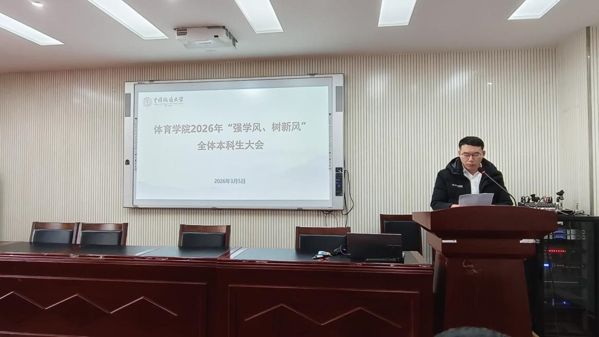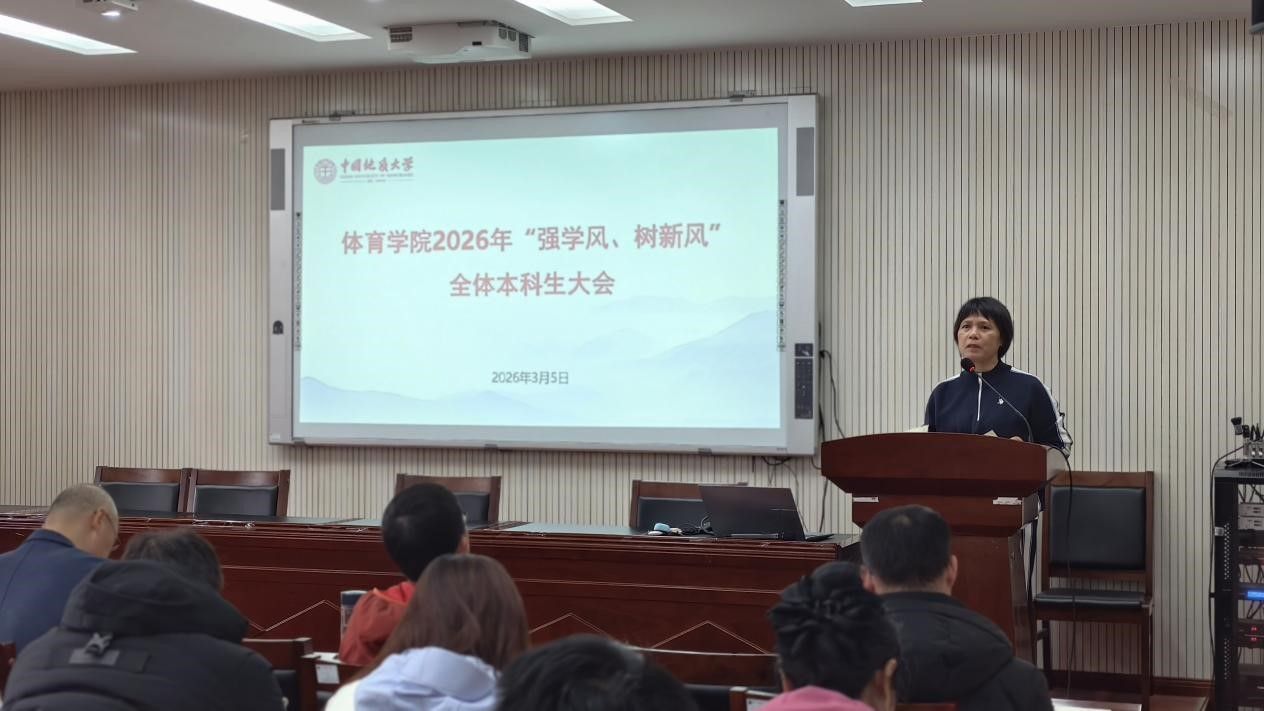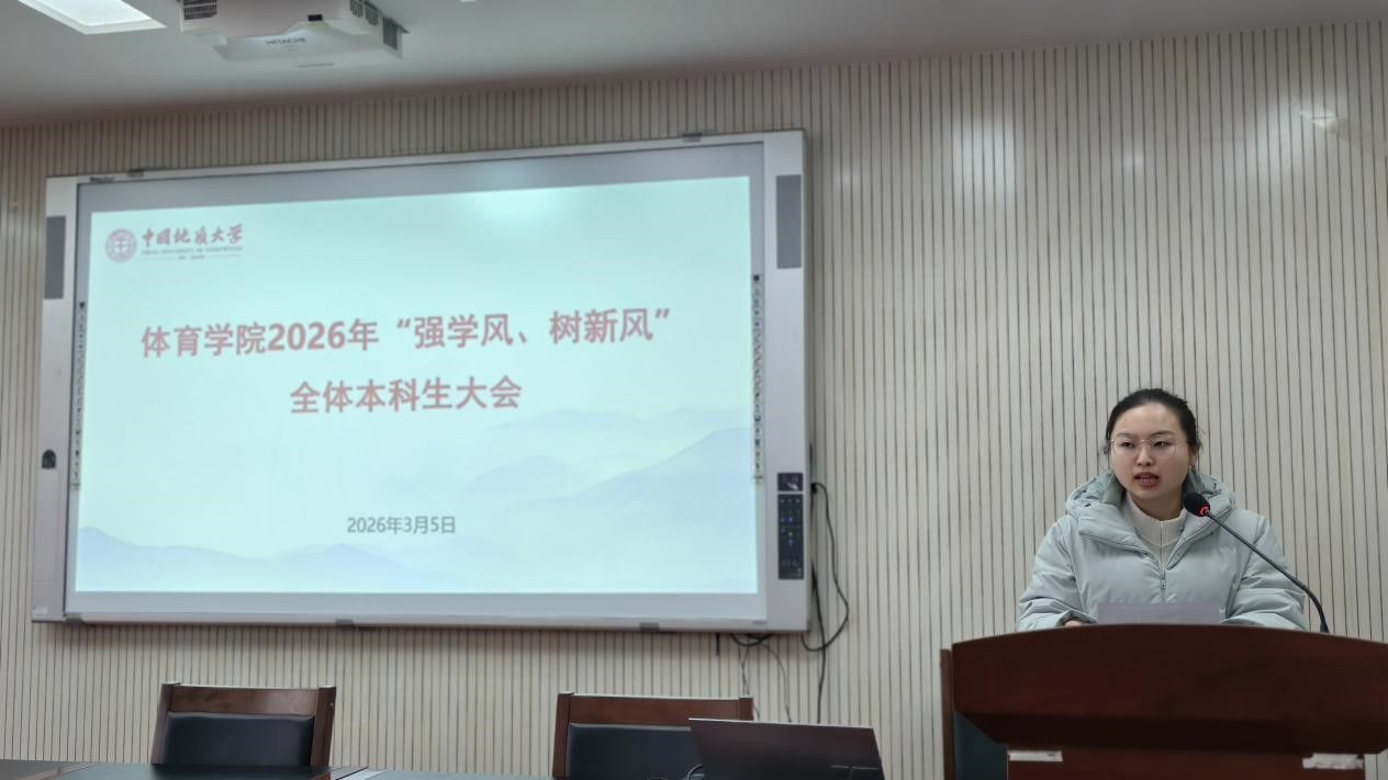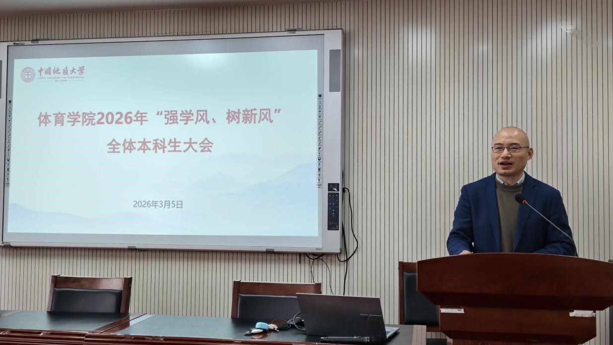 (通讯员 夏奕 杨麦琪 陈爽)为进一步加强学院学风建设,营造“严在地大”的优良育人氛围,引导全体本科生树立优良学习风气,bevictor伟德于2026年3月5日下午在体育馆三楼科报厅召开“强学风,树新风”全体本科生大会,学院全体领导班子、体育系主任、专业课教师、辅导员、班主任、教学秘书及全体本科生参加会议,会议由学院党委副书记朱军主持。