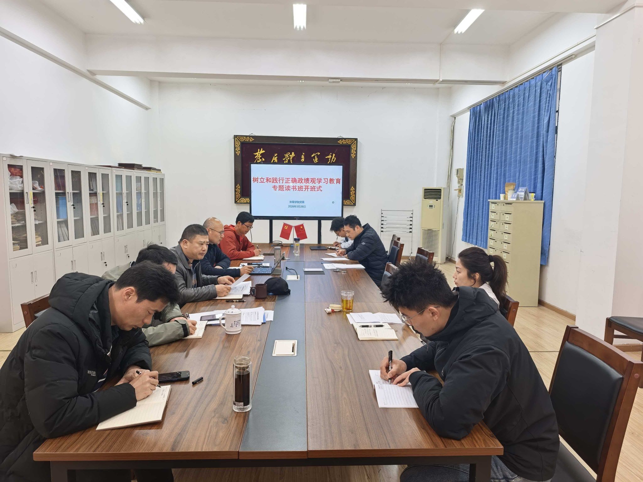 (通讯员:江伟贤)为深入学习领会习近平总书记关于树立和践行正确政绩观的重要论述,推动学院党员领导干部政治能力和理论素养持续提升,bevictor伟德党委理论学习中心组于2026年3月26日下午在体育馆党员之家举行“树立和践行正确政绩观学习教育专题读书班”开班仪式。开班仪式由学院党委书记何建新主持,学院全体党委委员、师生党支部书记参加学习。